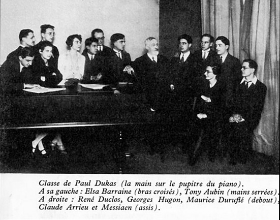 En attendant, voici quelques élèves attentifs dans la classe de Paul Dukas, vers 1929. Devinez qui est là (réponses sous la photo) :
