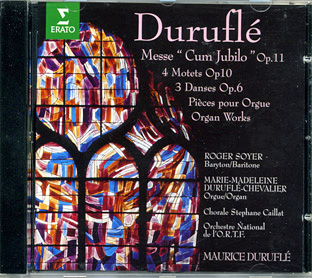 Jacques évoquait plus haut le fait que ce soit Marie-Madeline Duruflé qui tenait l'orgue dans les pièces pour orgue. Mais Maurice lui-même était organiste, titulaire de Saint-Etienne du Mont, et tient la partie d'orgue dans le Concerto pour orgue de Poulenc sous la direction de Prêtre, qu'il a d'ailleurs créé (je crois d'ailleurs qu'il a conseillé Poulenc pour la registration).